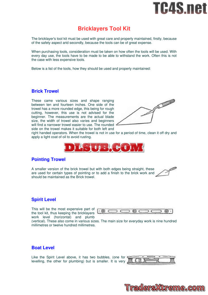 Bricklayers Tool Kit - JPG Image File