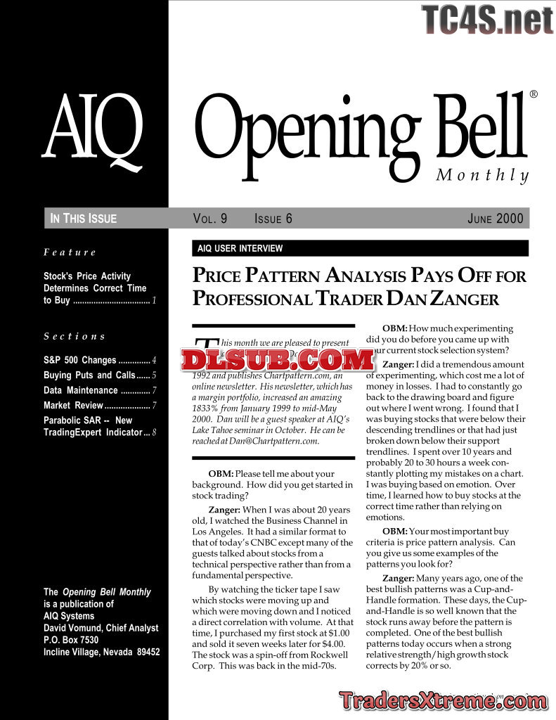 Dan Zanger Price Pattern Analysis Pays Off - JPG Image File