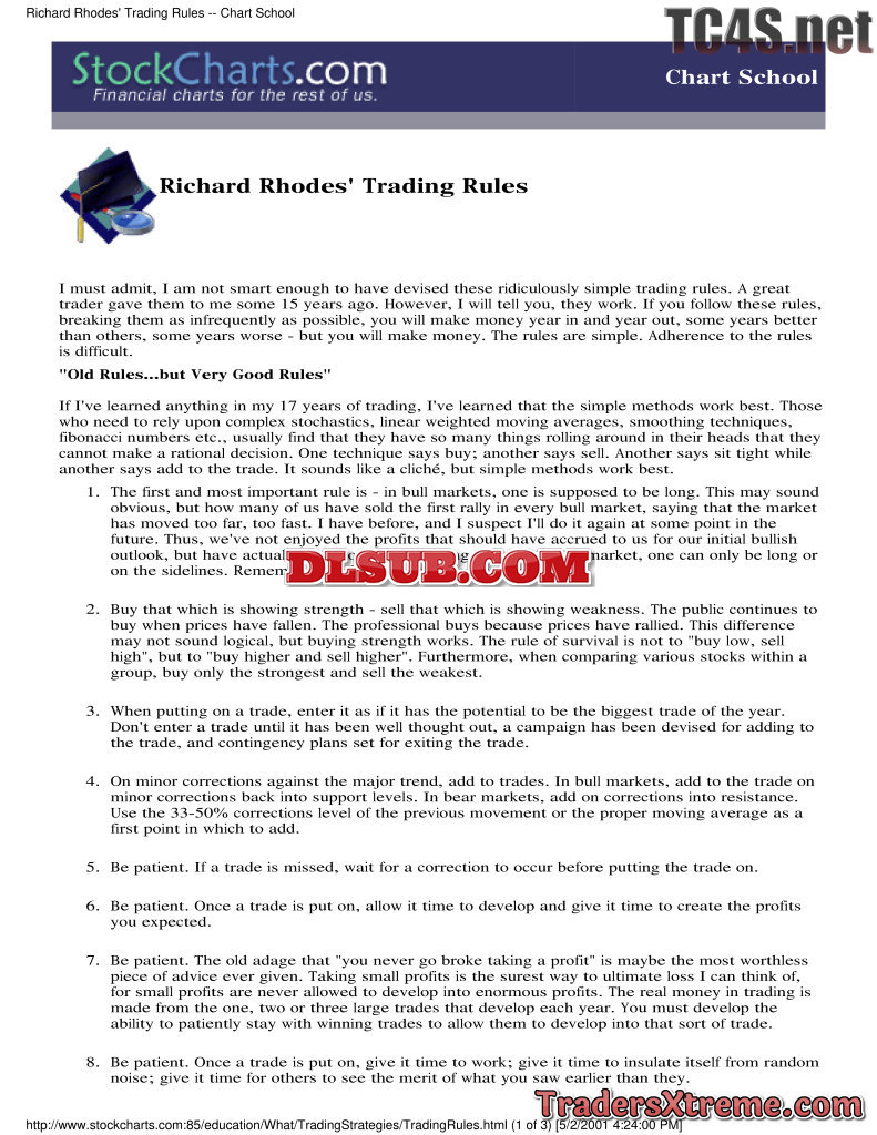Richard Phodes Trading Rules By Richard Phodes - JPG Image File