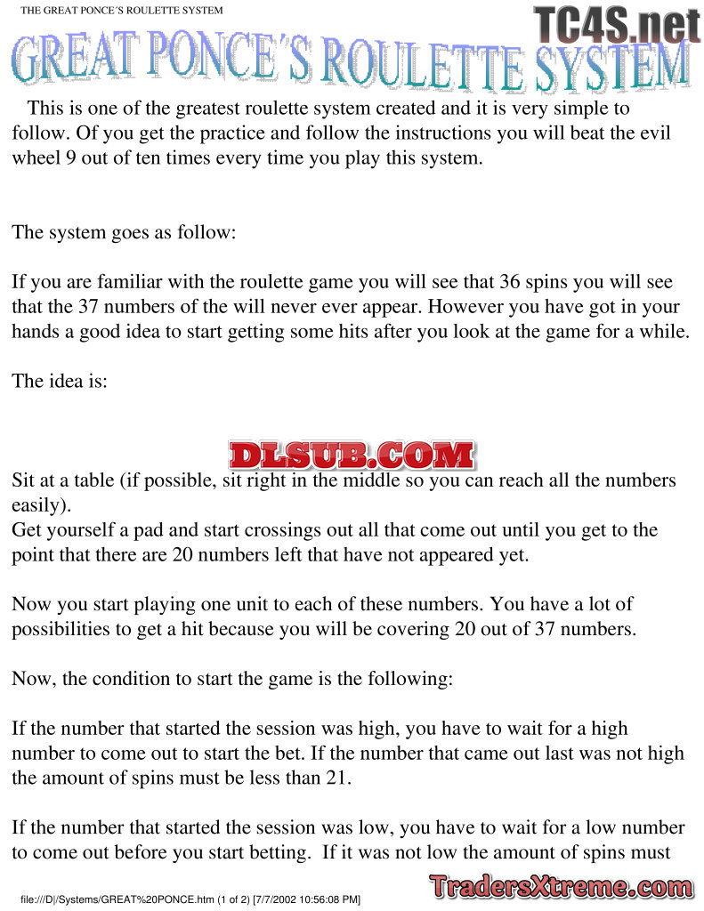 Great Ponces Roulette System