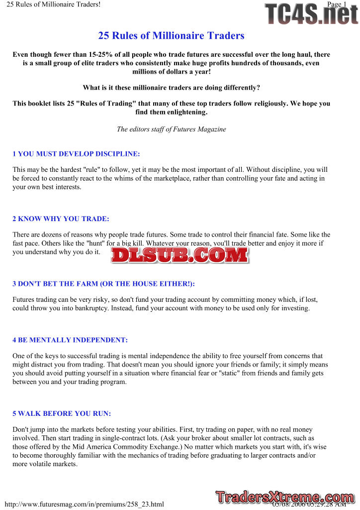 25 Rules Of Millionaire Traders - JPG Image File