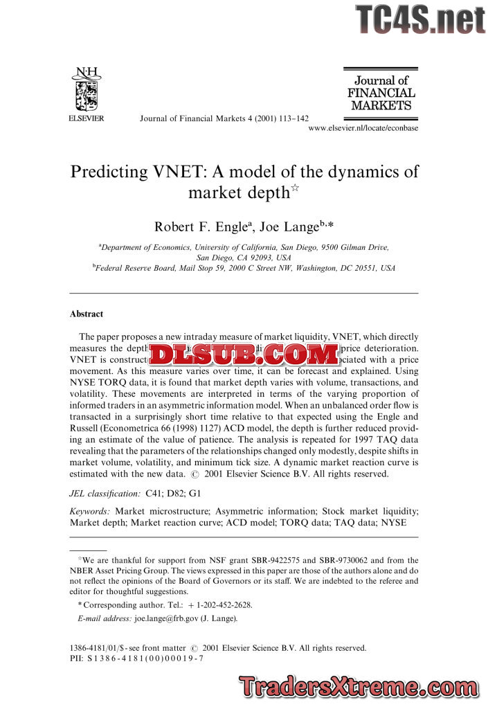 Engle And Lange Predicting Vnet A Model Of The Dynamics Of Market Depth - JPG Image File