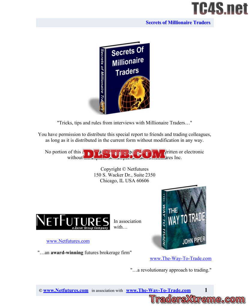 Secrets Of The Millionaire Traders Vol I - JPG Image File