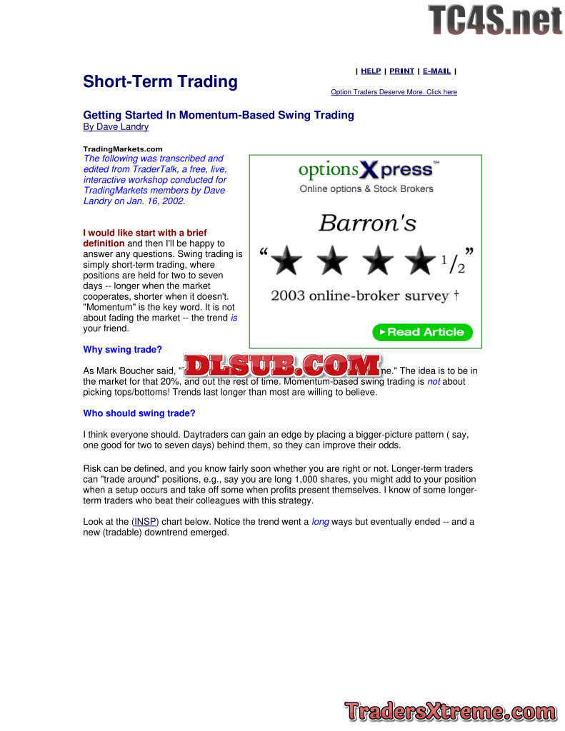 Landry David Getting Started In Momentum Based Swing Trading - JPG Image File